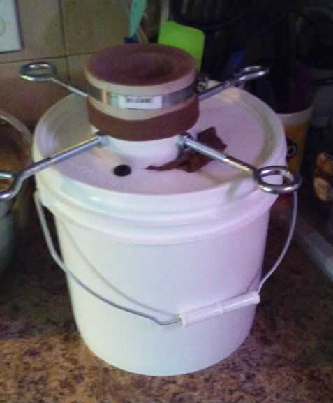 Que había visto varios diseños y de la araña del salto de la confianza se basa en varios sitios Web. La idea básica de la araña de hop es mantener los desechos de salto de la hierba. Pensé que este era el tipo de cosa que necesitaría si se utilizar lúpulo entero, y que un chico como yo (todo solo utiliza pellets lúpulo) no realmente necesitaría uno. Te diré ahora que la araña salto realmente demostró lo equivocado que estaba. Incluso los saltos de la pelotilla se desintegran y se amplían, creando una gran cantidad de desechos. Hice un lote de dos galones con la araña de salto, y recuperé unos 3/4 de taza de escombros.