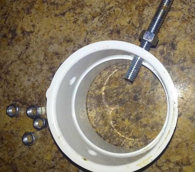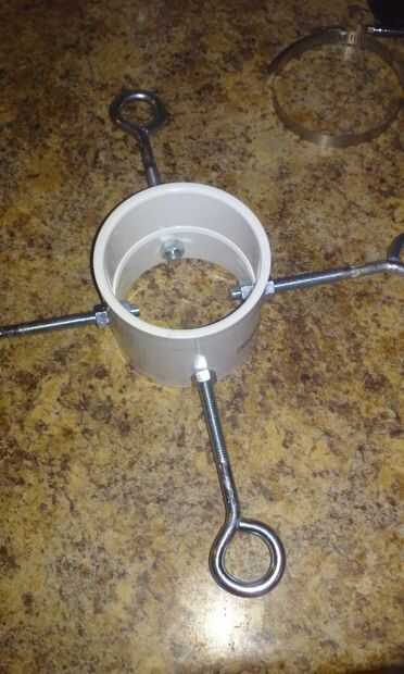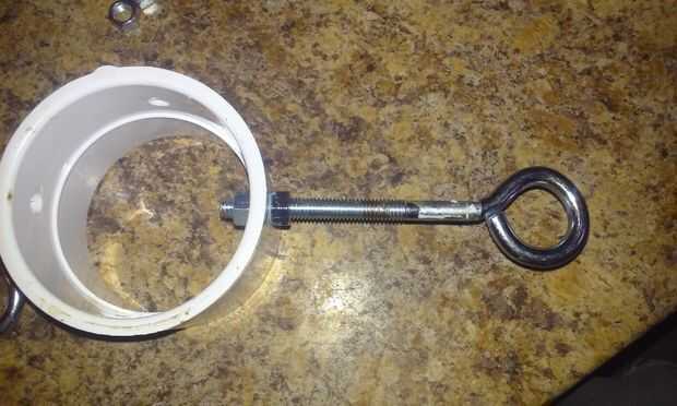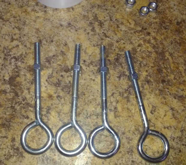 Una vez tengamos nuestros orificios para los tornillos, es el momento de instalar el hardware. Tomar cada perno de ojo y el hilo de rosca de las tuercas. Deslice cada tornillo en uno de los orificios en el enganche. Como instalar cada tornillo, Enrosque una tuerca en cada tornillo para sujetarlo en su lugar. Una vez que todos los pernos se instalaron, volví y ajustar las tuercas. Moví la tuerca en el interior del acoplador hasta casi el final de la caña del tornillo, dejando aproximadamente 1/8" de la caña. Luego ajusté la tuerca en el exterior del enganche hasta que fue ajustada contra el acoplador. Apretó entonces usando dos llaves ajustables. No apriete demasiado o usted podría quebrarse.