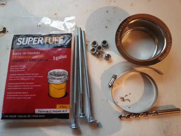 4. abrazadera acero inoxidable lo suficientemente grande como para caber alrededor del desagüe de la disposición