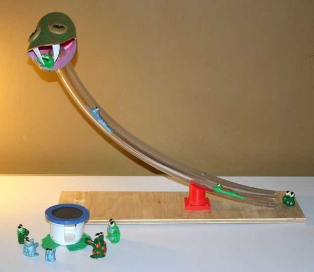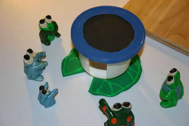 Otros esperan en la cama elástica (una taza de yogur corte con paño con cinta dentro de la tapa) para ver lo que sucede después!