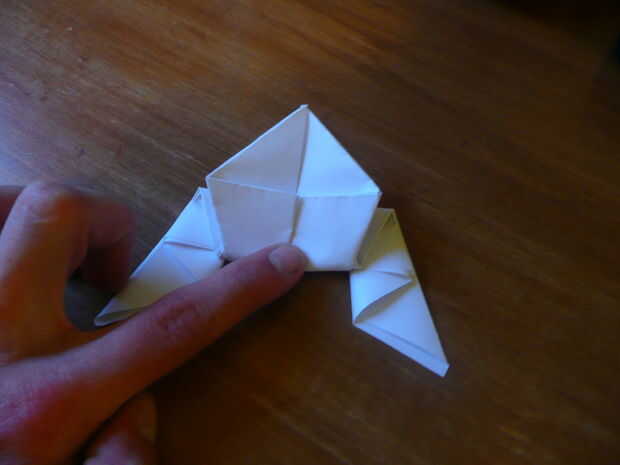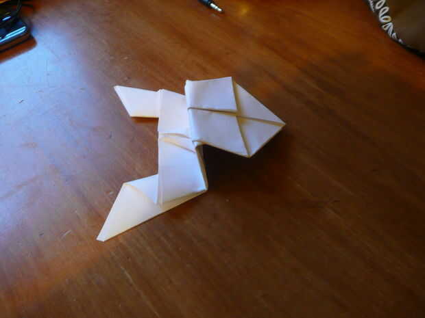 Cualquiera de varios anfibios sin cola cerveza de malto-bodied con extremidades traseras largas para saltar!¡ Origami!Déle un intento!Paso 1: Doblar por la mitad Doblar por la mitad.Paso 2: Abra y calabaza Abrir y aplastar.Doblar la aleta al otro lad