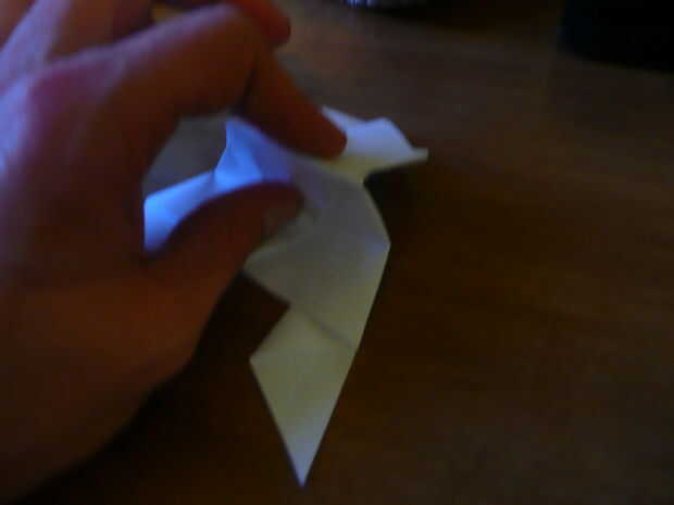 Este es el último doblez. Después de que la rana ha hecho su sit up Dale la vuelta. Luego doblar la espalda en la mitad por lo que su cuerpo es en forma de z. La rana está finalmente terminado!