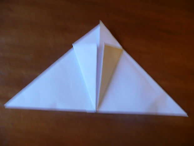 Tomar una esquina del diamante que acaba de hacer y doblar hacia el centro del diamante. Después hazlo hacia el otro lado.