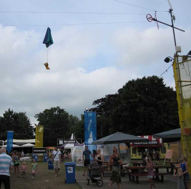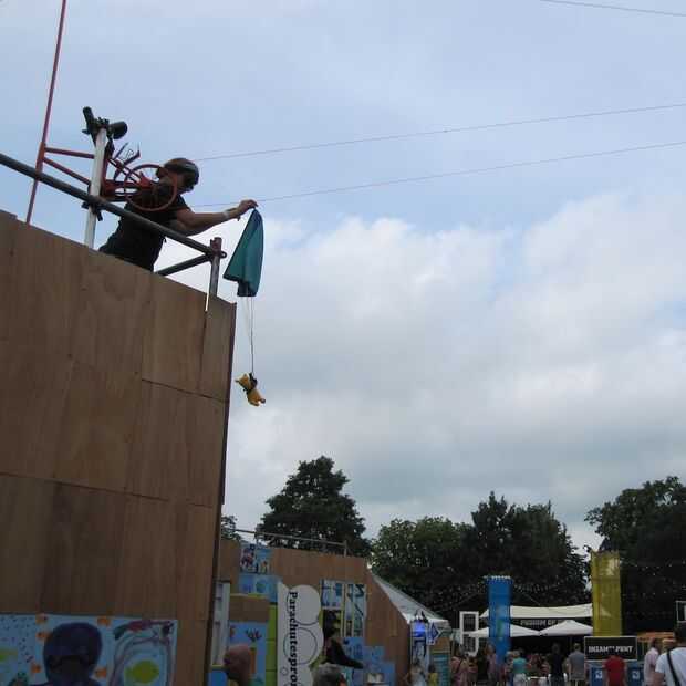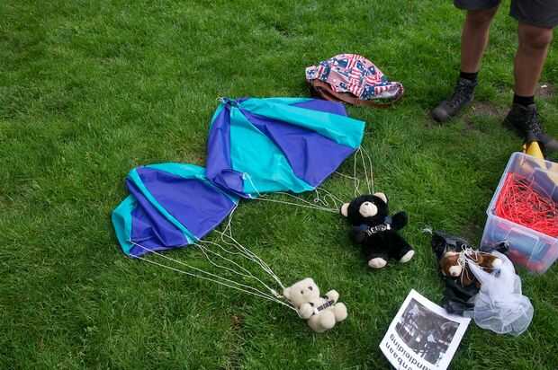 Why? Porque nos pidieron por Nynke Oele, para el Festival de artes escénicas Noorderzon en Groningen (más precisamente, se nos pidió hacer "algo" para que los niños podrían hacer su peluche un salto en paracaídas, basado en algo de información sobre parafauna. Sin usar cometas y sin lastimar a los ositos de peluche (por lo que se descartó el uso de cohetes de agua y antorchas:-s).