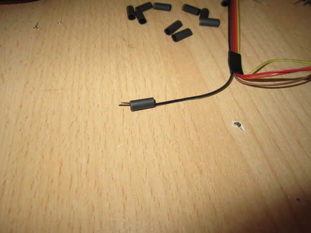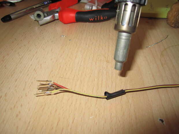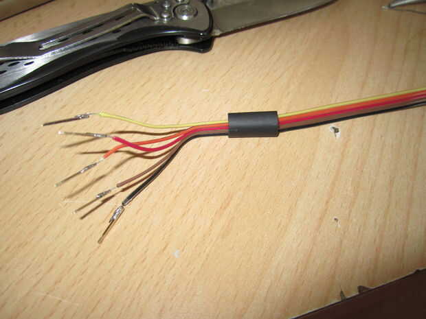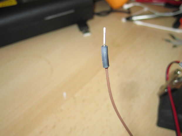 Cuando hice esto el abrigo del encogimiento intentado doblar los cables en un tubo de modo que había aplastado abajo y deje que el pegamento ajustar (reloj que se calienta ).