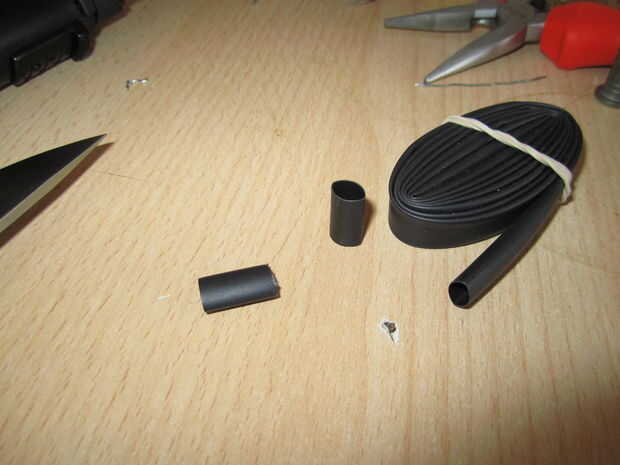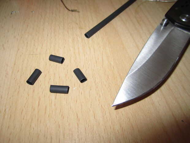 Última cortar pedacitos de 1 cm sobre el tubo de 3 mm , deslícelas sobre los alfileres que cubre la conexión y un poco de los alfileres y el calor, el pegamento será evitar que resbale y endurecen un poco cuando se enfría crea un pequeño mango que hace que sea mucho más fácil conseguir dentro y fuera de los agujeros pequeños.