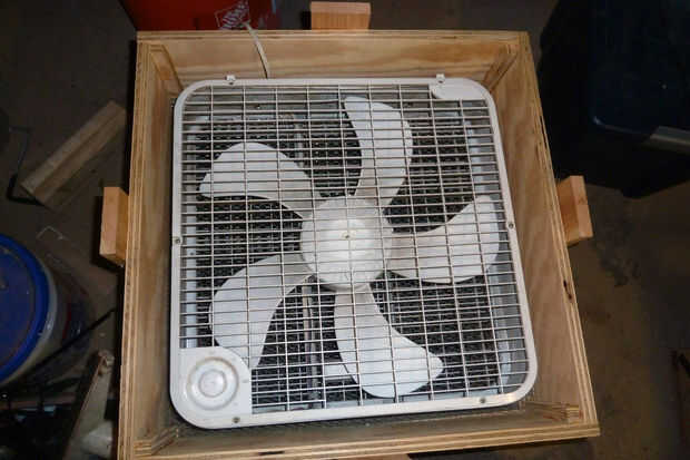En la práctica puede hacer más sentido que la fuente de calor debajo de la oast. Yo he ejecutado esta manera usando la base de un deshidratador que calienta y pone hacia fuera un flujo de aire moderado. Cuando se llena con cubos de lúpulo más, mayor flujo de aire será necesario. Los compartimientos son el tamaño perfecto para caber en una caja del ventilador. Pienso seco la mayor parte de mi cosecha colocando un ventilador de caja en la bandeja más baja.