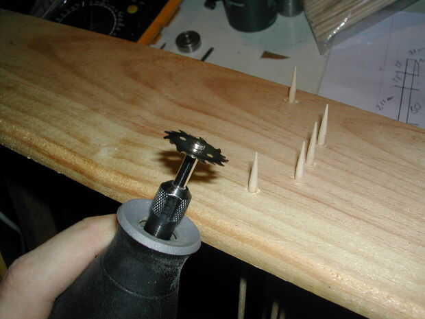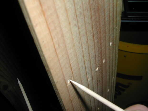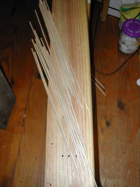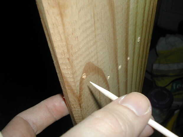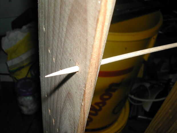Ahora insertar los palillos de barbacoa en los agujeros.