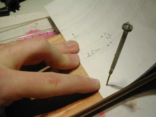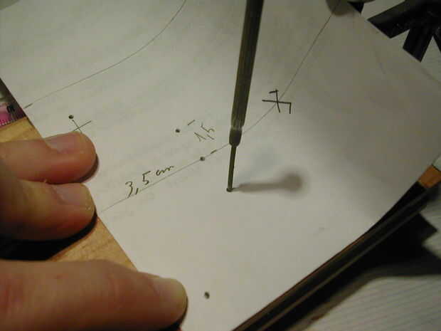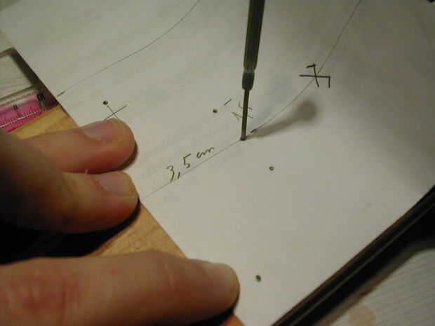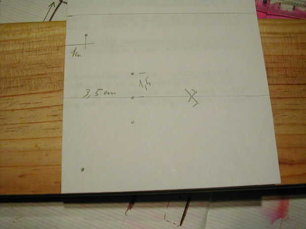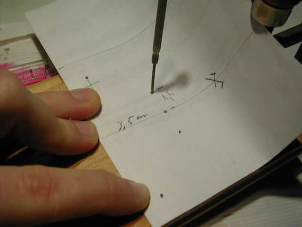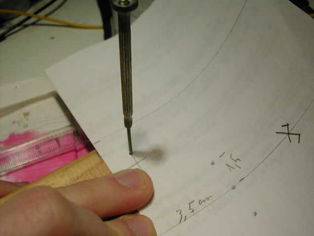 Simplemente hacer un patrón de un sacador de marca en madera con un pequeño destornillador.
