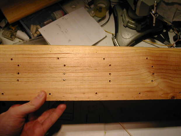 Ahora que hemos colocado las filas, tenemos que hacer los agujeros para los palillos de barbacoa en.