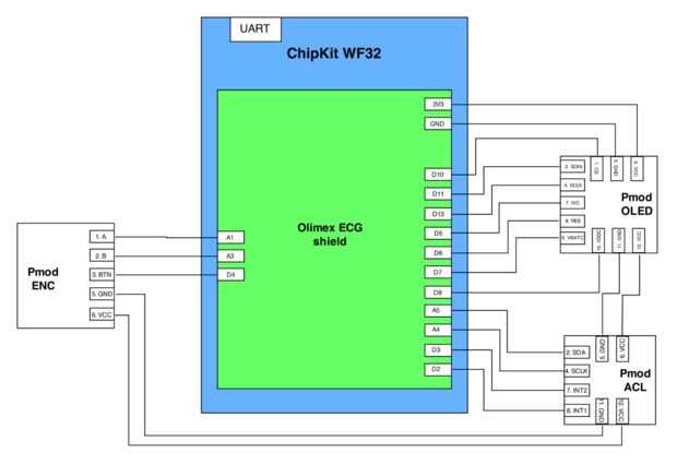 Conecte el blindaje de ECG sobre el tablero del microcontrolador ChipKit.