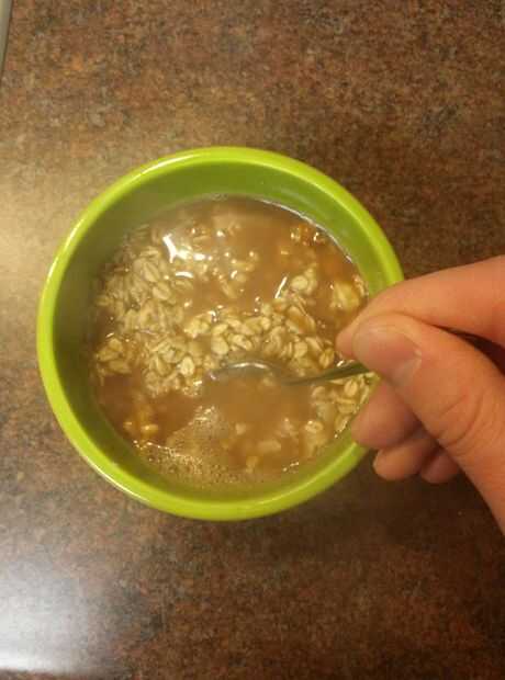 Tip: en la mañana, después de añadir el agua, pongo el recipiente en el congelador! En el momento de cepillar mis dientes y poner mi ropa, mi comida es a la temperatura perfecta! Si crees que vas a dejar en el congelador durante más de unos minutos, entonces sugiero dejar en la nevera. Unos 7-10 minutos en la nevera es suficiente. De lo contrario sólo dejó es sentarse en el mostrador. Supongo que tomará alrededor de 15 minutos o menos.