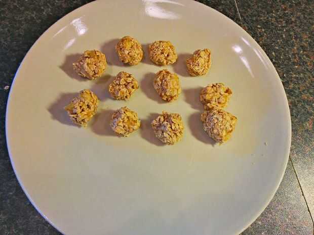 Hecho con bolas de plátano avena.