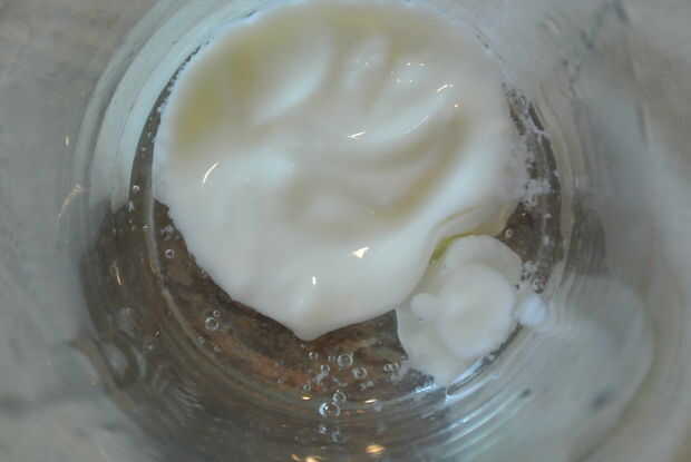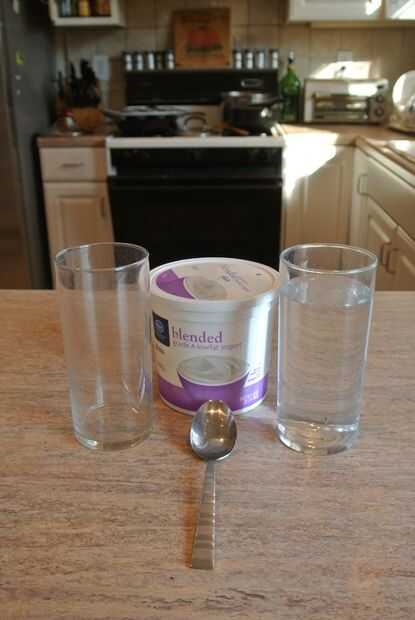 • Empezar poniendo 2-3 cucharadas de yogurt natural en una taza para la mezcla.