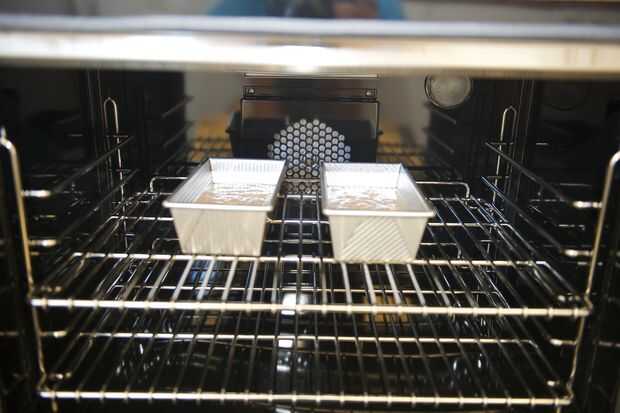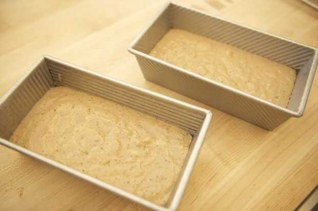 Vierta la mezcla en dos bandejas de horno y hornear a 325 F por 1 hora o hasta que un palillo salga limpio.