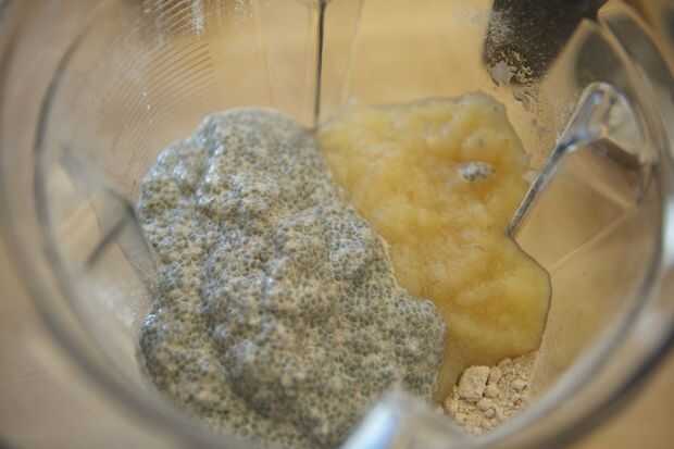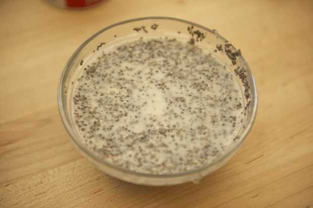 Lo primero que debes hacer es mezclar la leche chia semillas y almendras en un tazón. Esto es para que las semillas empiezan a convertir en un gel antes de mezclarlas con todo lo demás.