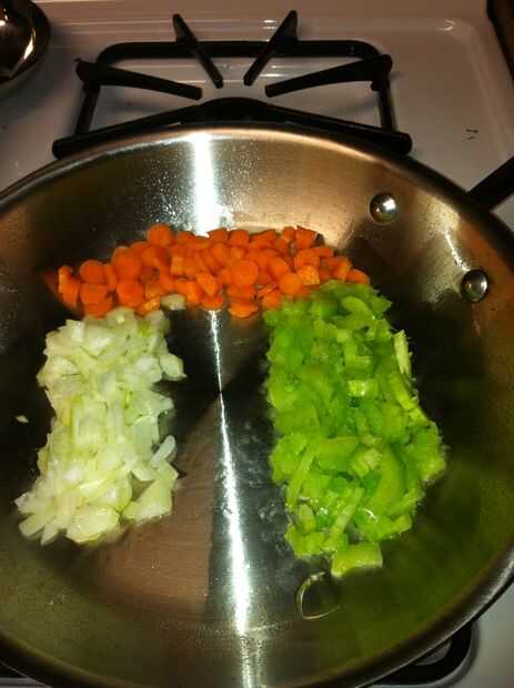 Paso 2: Saltear cebolla, zanahorias y apio en aceite de oliva