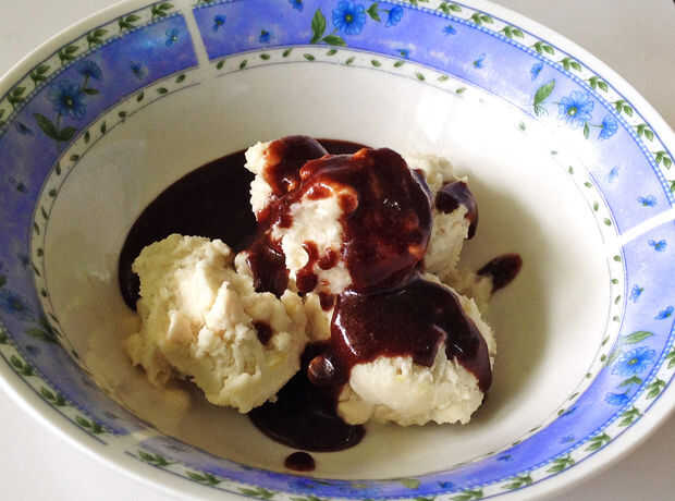 Ahora, la salsa está lista! A refrigerar hasta que lo necesite. Si se hace con ingredientes que estaban a temperatura ambiente, se espesa en la nevera. Llovizna sobre su helado este verano y probar en otros postres también!