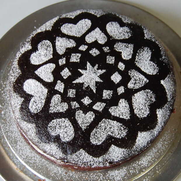 Extender la mermelada entre las capas y decorar con azúcar en polvo, para un cumpleaños libre de colesterol libre, grasa!