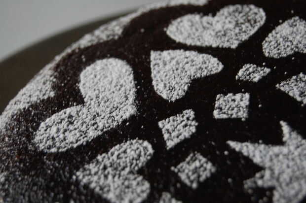 Una palabra de ADVERTENCIA: polvo tu pastel justo antes de servir. El patrón de azúcar será absorbido por esta torta maravillosamente húmeda y desaparecer completamente si decorarlo antes de tiempo.