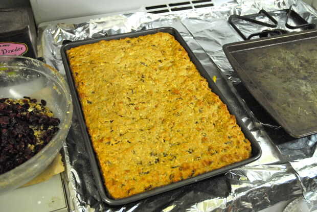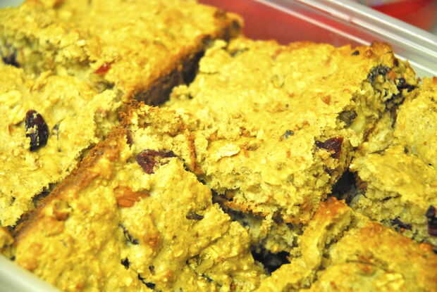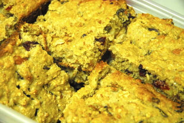 Hornee a 375 por 20 minutos, luego cortan inmediatamente en 25 bares. Deje que los bares se enfríe durante 10 minutos antes de comer.