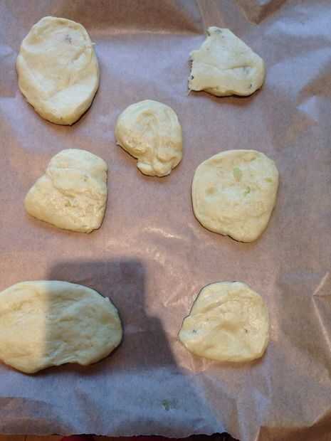Estos son suaves, no que galletas masticables, no demasiado dulce, especias, patata.Cuando se lo muerde, usted degustará la pasas y chip choc. En la parte superior, algunos son espolvoreados con azúcar en polvo, algunos más con azúcar glas. Es muy bu