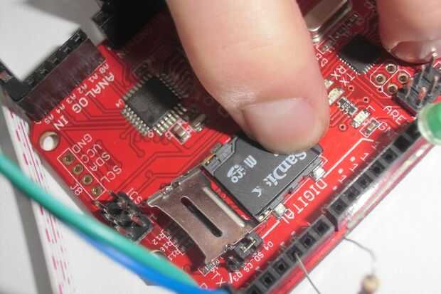 Volver a almacenar los datos de cámara de serie. Instale la tarjeta SD en la toma de la Crowduino.