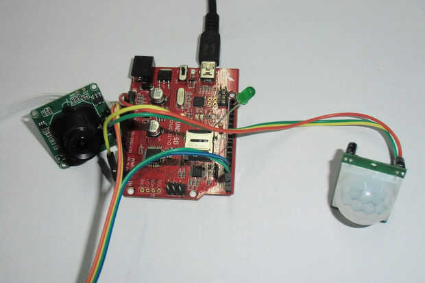 es una buena idea para encajonar todo el sistema, usar un caso de papar mini anterior. corte algunos agujeros para hacer la cámara y el sensor PIR para salir. un 6V o 9V DC para alimentar la energía Gato de Crowduino, o también puede utilizar un soporte de la batería y 4 baterías para hacerla movable。