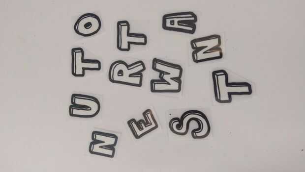 Seleccione las letras que desea utilizar y cortar de la hoja (si usas ese tipo de hierro en carta). Asegúrese de dejar la capa de plástico transparente en las letras if si estás usando el estilo de la hoja.