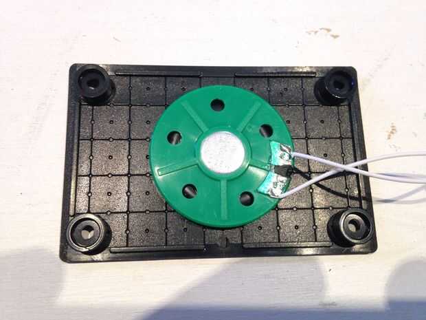 Yo me Monte el altavoz para que se queden fuera de la base de la caja tan necesaria para perforar la placa base, convenientemente para mí, tenía un patrón de cuadrícula con pequeños hoyuelos que hizo fácil para la perforación.