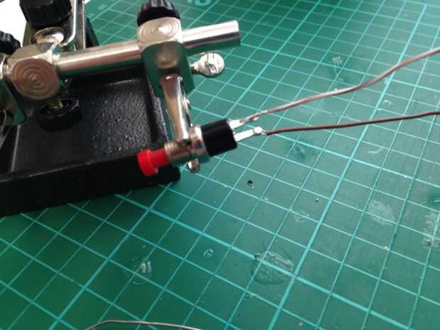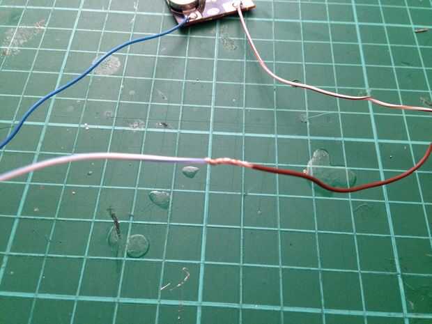 Soldar un cable diferente para cada terminal y comprobar que el conjunto es bueno. Debe tener dos interruptores, cada uno con dos cables conectados. Elegí distintos cables de colores para distinguirlos fácilmente aparte.