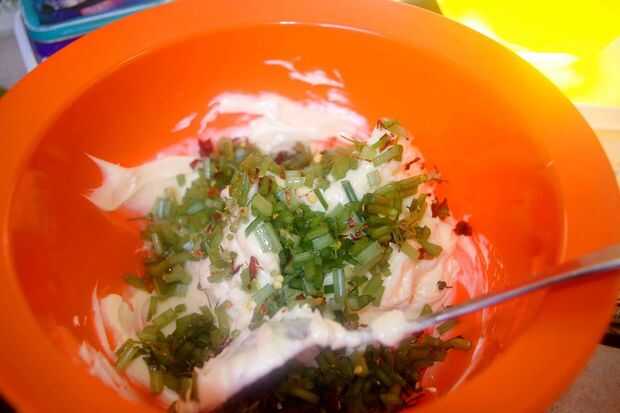Ponerlo todo en el envase original de mantequilla y espolvorear con pimentón dulce. Mantenerlo refrigerado. Si eres cuchara lujo sensación la mantequilla sobre se aferra película y convertirla en un rollo, dejar en la nevera hasta que duro, retire el film transparente y cortar círculos y mostrar en un plato en la mesa decorado con flores de ajo silvestre para impresionar a los huéspedes.