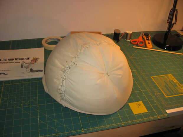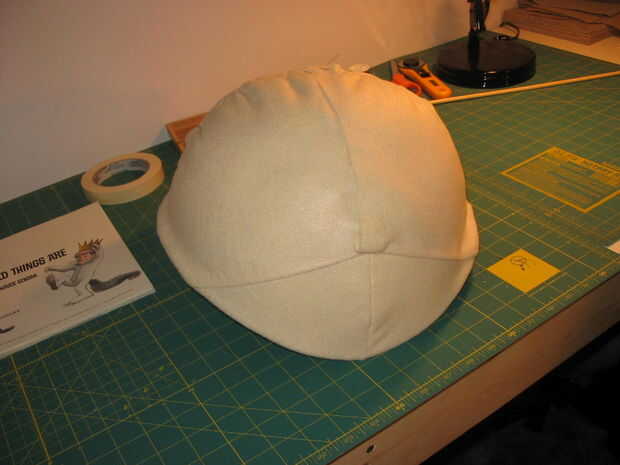Yo entonces lo relleno de poliéster relleno a través de los agujeros a la izquierda en el interior de la parte superior de la base para obtener una forma agradable, mullida, casco-como.