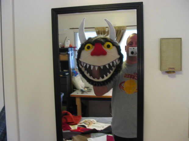El manga fue hecha por dos piezas de costura del paño grueso y suave junto--coloreada crema y el otro rojo. La costura delantera fue colocada para el color crema de lana envuelto alrededor de la parte delantera de la espuma para crear el labio inferior, dejando el lana rojizo alrededor de una pulgada a ser el interior de la boca.