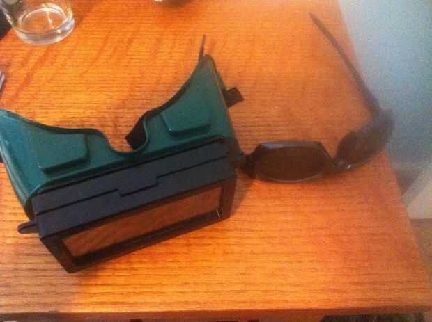 Yo uso un par de gafas de sol polarizadas por debajo un conjunto barato de anteojos de la soldadura. Esto reduce la reflexión a un nivel tolerable. - Mantener animales domésticos y niños lejos - es el punto focal para mi set up a la altura correcta para quemar a un perro o un bebé. Sólo toma un momento, sobre todo si se está calentando el metal.