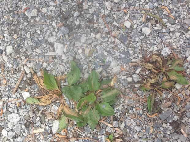 Aquí, puede ver varias malezas que han sido hervidas junto a uno que no era. El agua caliente es rápido y eficaz y no deja ningún rastro detrás. Precalentar el agua que va a hervir hace que el proceso vaya más rápido-en mi caso, llené una botella de agua 500 ml de la manguera y queda en el sol mientras la bandeja de agua era calefacción.