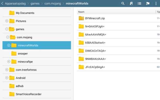 Restaurar a Andriod puede hacerse con la aplicación "My Files". Copie la carpeta de la ubicación del backup a la carpeta minecraftWorlds. O descargar y descomprimir tu archivo de respaldo zip de Google Drive. No te olvides de borrar el archivo zip después de extraer.
