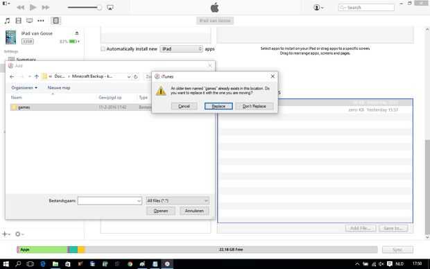 Restaurar es lo contrario de una copia de seguridad. Utilice el botón de "Añadir archivo..." y seleccione la carpeta de juegos en el ordenador. Habrá un mensaje de que la carpeta ya existe. Seleccionar "Replace" y espere hasta que todos los archivos se copian en el dispositivo.