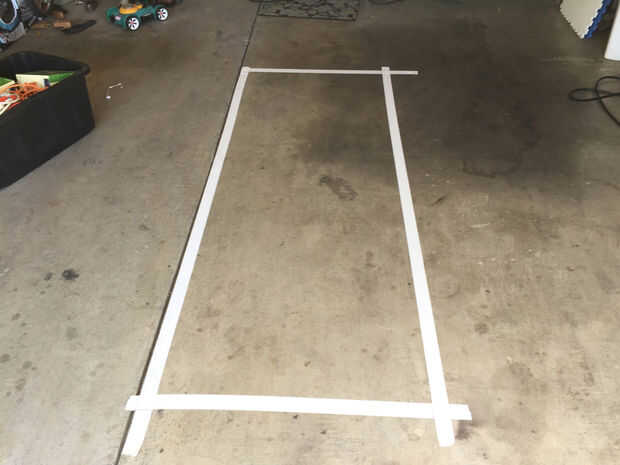 Yo quería hacer como poco corte, cinta adhesiva y atando según sea necesario. Así que después de cortar el patrón fuera, aparte doble árbol y apilar las capas uno sobre otro. Necesitaba una fácil visual de referencia en 1/2 el ancho. Así, graba solo un rectángulo de 3 x 8 en el piso.