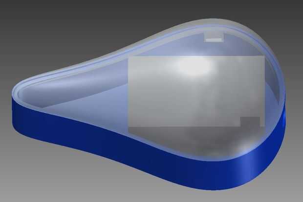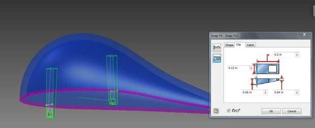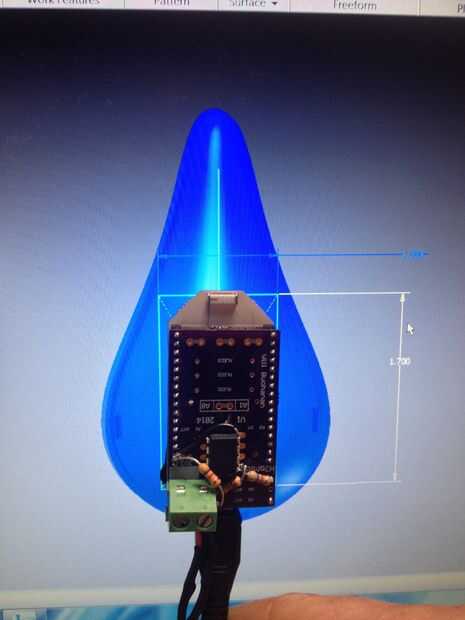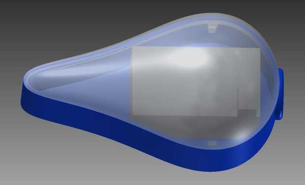 He diseñado como una gotita de agua o lágrima (vaso medio lleno o vacío?). Esto fue hecho en Inventor usando la función de las piezas de plástico, que es bastante útil para este tipo de trabajo.