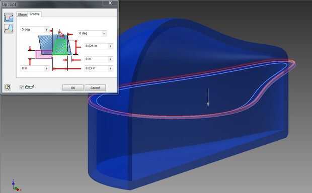 Empecé por dibujar un perfil, se gira 180 grados y sacando la cara posterior para darle profundidad a la pinoccio y el escudo de la casa. Una vez hecho eso, es una operación bastante simple hacer la forma de una concha. Puede entonces dibujar una línea de parte y divide la pieza en dos cuerpos. Luego puede utilizar la función de alojamiento de los labios para hacer encaje.