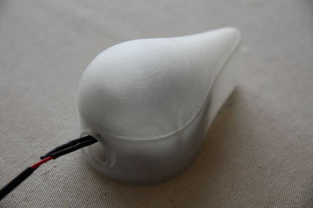 Imprimí un pedazo de prueba, y funcionó! Entonces imprimí dos escala unos. Resultó bastante bien. Me aseguré de incluir un orificio en la parte inferior donde puede caber un microUSB para carga y también sacar el cable del sensor.