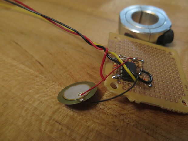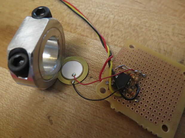 Una vez tuve la protoboard y la superficie fresada, decidí conectarlo a un grifo para la prueba. Era un sistema autónomo que atado al extremo de un grifo con una llave allen. Por supuesto, no funcionó, porque mi cableado estaba totalmente equivocado. Por lo que era volver a la mesa de dibujo!