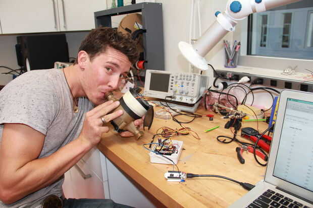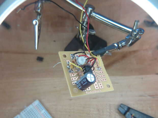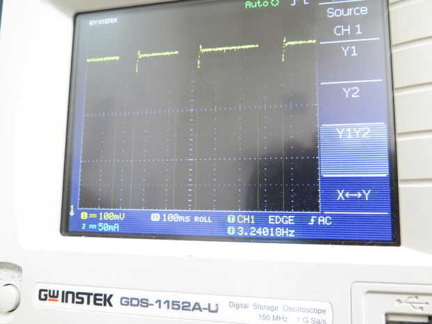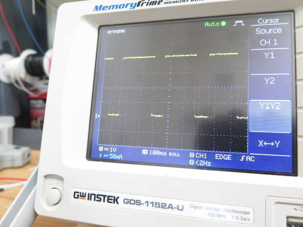 Una vez que el sensor de la derecha, pude obtener resultados concluyentes en el osciloscopio. Ya que no recomendamos en cuclillas en la calle de Oakland con un portátil y un montón de electrónica y prueba de esto, compré un metro de agua.