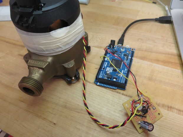 Elegí la versión industrial Neptuno T-10 porque es la versión carnosa por ahí y uno de la red de agua más comun que hay. Pensé que si pude leerlo en esto, usted será capaz de leer señales en cualquier cosa. Tiene mucho más cobre y plástico a pasar, que hacen que sea difícil captar una señal. Puede ver los valores de pulso en el osciloscopio.