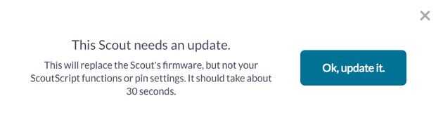 En el menú izquierdo de la consola basada en web de hq, haz clic en "añadir a scout" y siga las instrucciones. Cuando pregunte si desea instalar la actualización, de acuerdo. Esto actualiza firmware de tu explorador. En nuestro proyecto llama un scout "fregadero" otro scout "principal" (para indicar el medidor principal) y otro scout scout líder del"" (que se comunica con la red).
