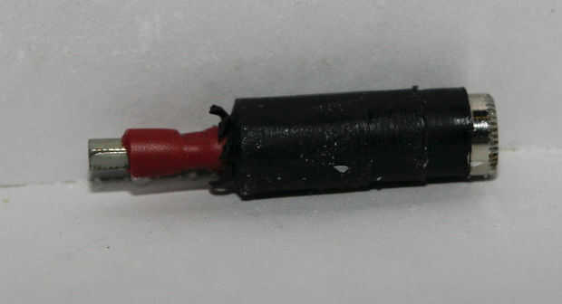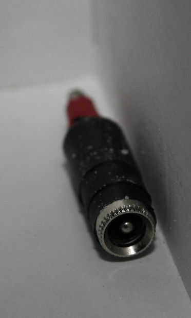 A continuación cortar el plástico exterior de sobre a mitad de camino hacia abajo de la toma. Removemos la tierra terminal el zócalo y soldar un cable bastante grueso a la patilla central. Engarce el conector en el cable y cortar algunas de su aislamiento por lo que puede llegar a ser como el polo positivo de la batería la parte exterior de la toma será el extremo negativo de la batería.