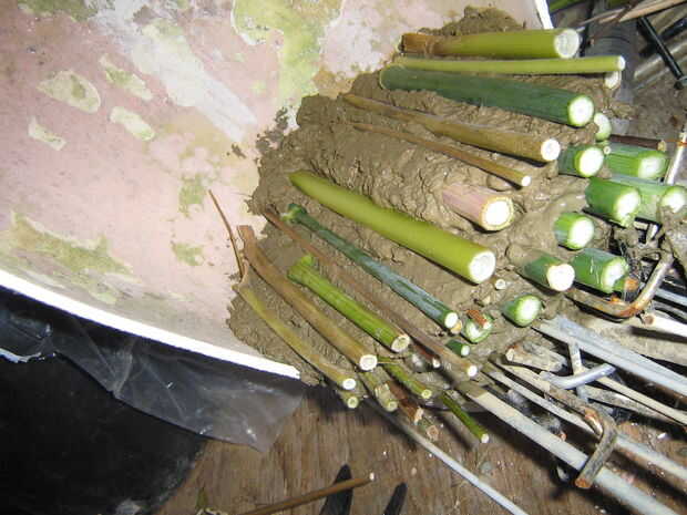 Capa los bares y los tallos en la mazorca y tratar de empacar todos los tamaños y tipos de tallos como sea posible. Así que usar eneldo, tallos de hierba, tallos de cicily, vides de uva y tallos de brassica que han ido a la semilla. Cualquier hueco o con un medio conciso.