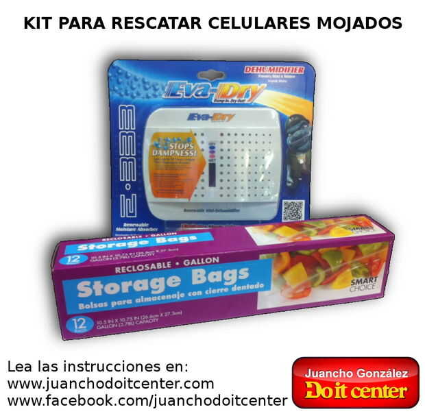 5. Coloque el teléfono celular y un deshumidificador Eva-Dry en una bolsa Ziploc, cierre la bolsa y dejarla en un lugar fresco y seco.