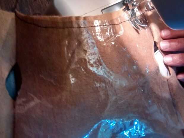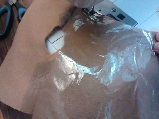 Si tienes una máquina de coser esta parte será más fácil, si no, pues no es un problema pero tal vez coser el plástico a la tela será difícil, sólo tratamos de hacer la costura apretado.